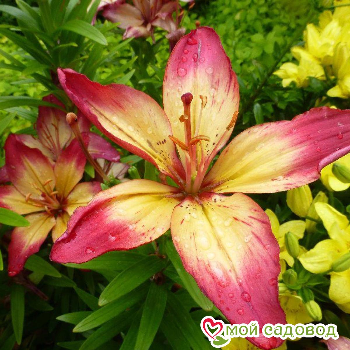 Лилия отличается высокой устойчивостью к морозам, грибковым заболеваниям. Высота растения достигает до 80 см. Стебли высокие, прямые, ярко-зеленые с густой листвой. Листики удлинённые, расположенные в поочередном порядке. Цветки крупные, насыщенные, розовые, имеющие оранжево-желтый центр, усыпанный крапинками, штрихами. Размножается любыми способами. Не имеет аромата. Отлично смотрится в одиночных, групповых, клумбовых посадках. Уход за лилиями включает в себя прополки, поливы, рыхления, подкормки, борьбу с болезнями и вредителями. Поливают лилии в период цветения, поддерживая почву в увлажненном состоянии. Чтобы избежать пересыхания и перегрева почву мульчируют перегноем или торфом слоем в 5-6 см. Лилии хорошо отзываются на подкормки. Первую подкормку проводят весной после схода снега, разбрасывая по поверхности почвы азотные удобрения. Во время бутонизации растения поливают растворенной в воде аммиачной селитрой, непосредственно перед цветением использую фосфорно-калийные удобрения в жидком виде, в конце лета, но не позднее середины августа, лилии подкармливают фосфором и калием. Выращивать лилии на одном месте дольше 3-4 лет крайне нежелательно: луковица нарастает, становится рыхлой, растениям становится тесно по соседству. На 5 -6 год заметно снижается высота цветоноса, количество бутонов и значит, луковица истощена, а это может привести к заболеваниям и гибели растения. Осенью, когда надземная часть растения отмерла, стебель обрезают на высоте 15 см от поверхности почвы, гнездо выкапывают целиком, отделяют от материнской луковицы детки и высаживают их на доращивание. Саму материнскую луковицу пересаживают на новое место. В нашем интернет-магазине вы сможете купить Лилии Так же возможно вас заинтересуют Лилия-дерево Пурпл Принц и Лилия (ЛО-гибрид) Пинк Хевен